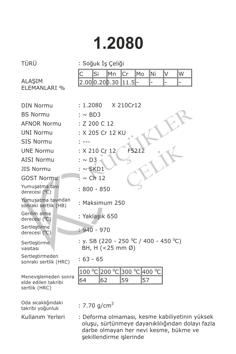 1.2080 Soğuk İş Çelikleri
