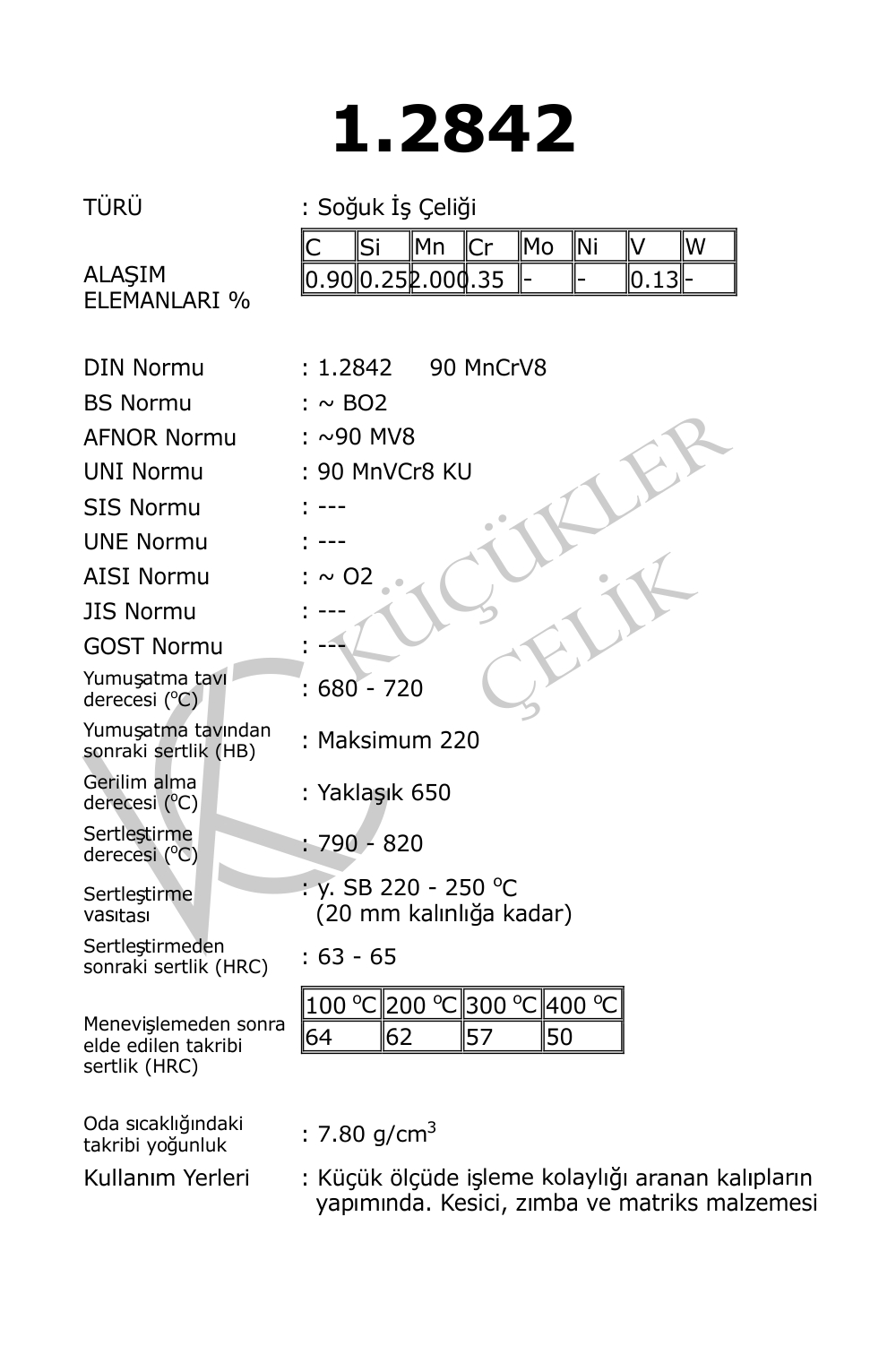 1.2842 Soğuk İş Çelikleri