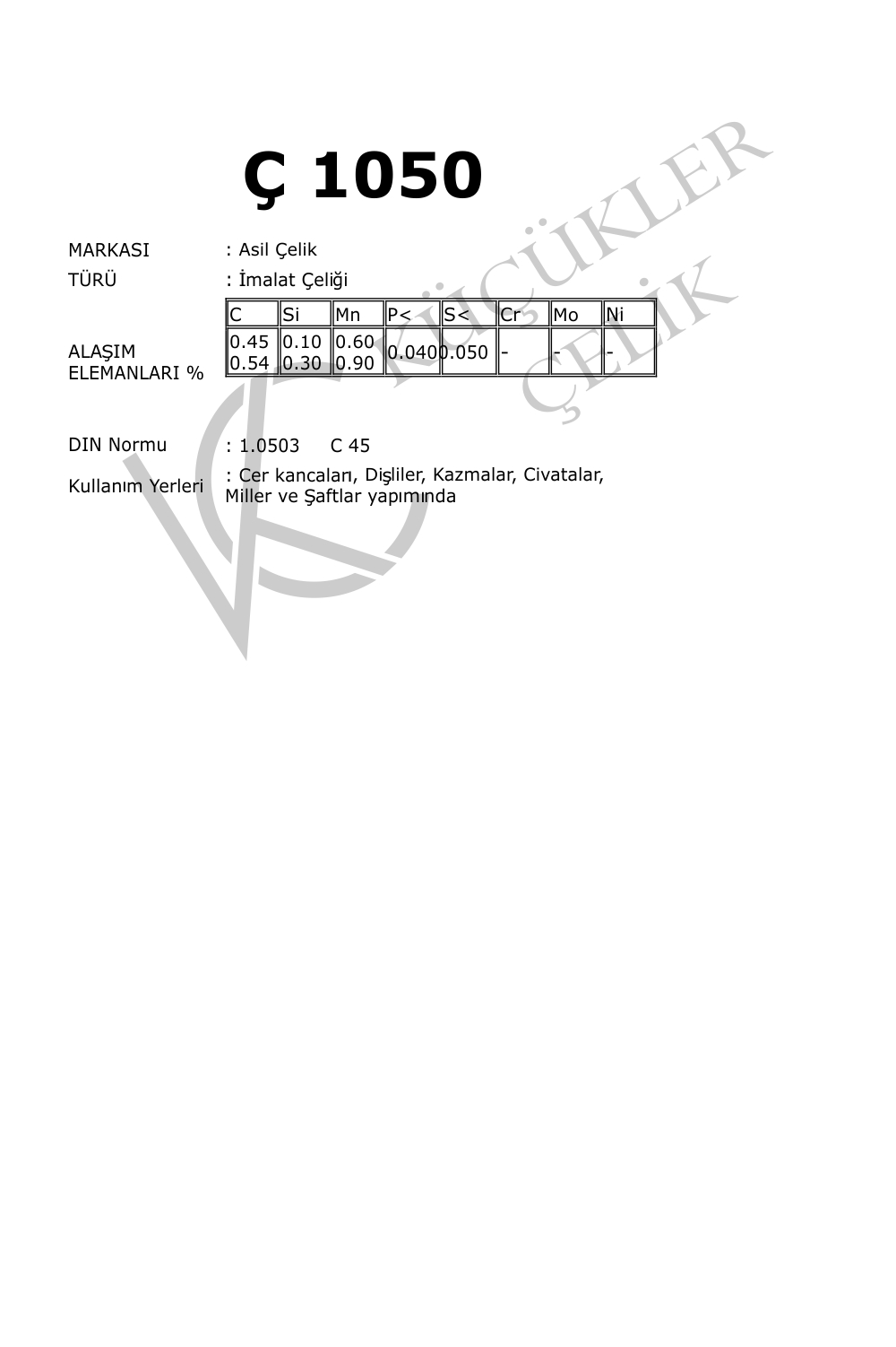 C-1050 Asil Çelik Grubu